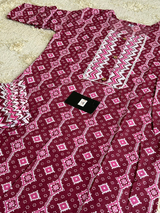 Pure HandBlock Cotton Kurti N Pant with Dupatta