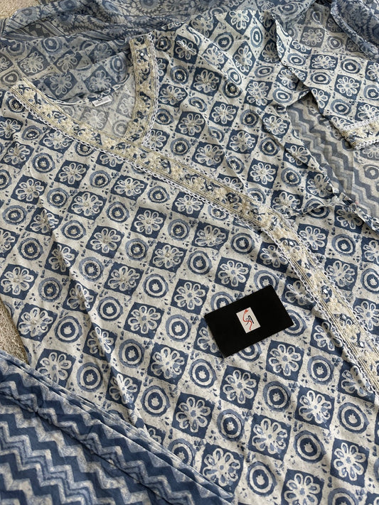 Pure HandBlock Printed Cotton Kurti N Pant Set