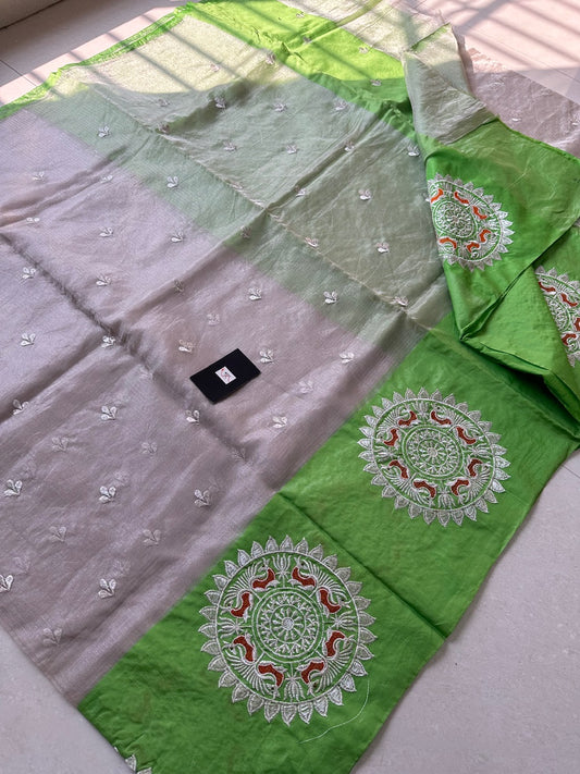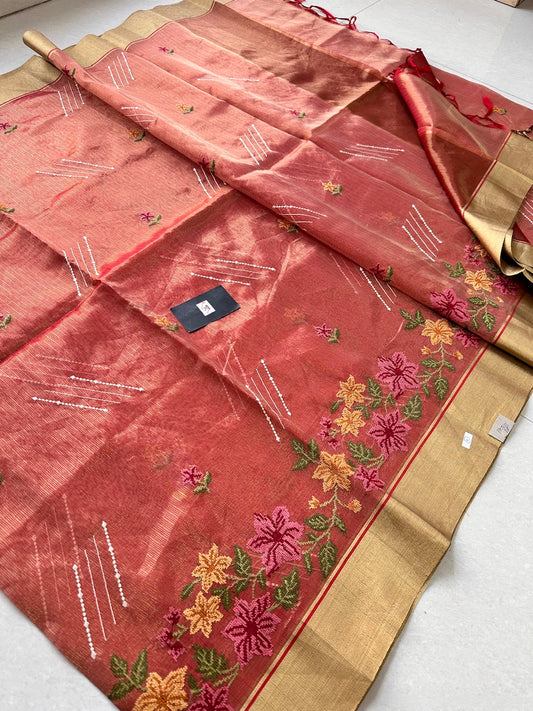 Pure Embroidered Kota Cotton Tissue Doria Saree